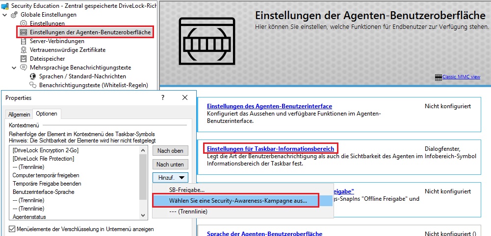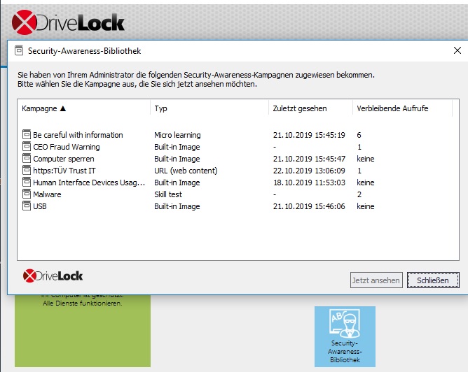 Anzeige der Security-Awareness-Kampagnen auf dem DriveLock Agenten