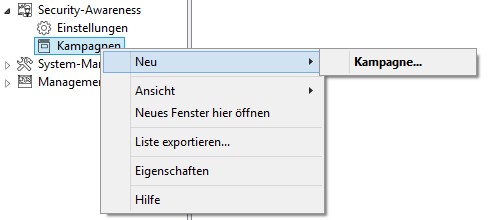 Um die neue Kampagne bestimmten Computern, Benutzern und Netzwerkverbindungen zuzuweisen, öffnen Sie die Eigenschaften der Security-Awareness-Kampagne. Hier können Sie auch alle Einstellungen ändern, die Sie im Neue Kampagne Assistent vorgenommen haben.