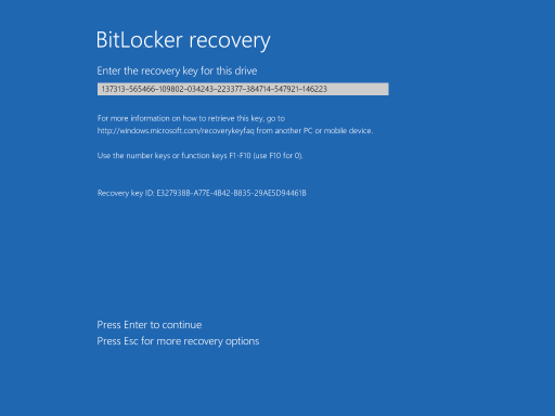 Der Benutzer gibt diesen Schlüssel beim Starten seines Client-Computers in den Dialog BitLocker recovery ein.