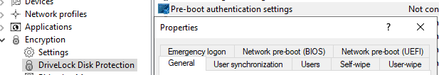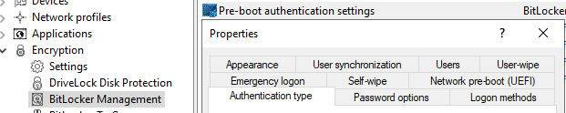 For BitLocker Management you can configure PBA settings on the following tabs: