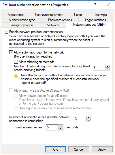 - Leave the default value for failsafe at 3. This way you can make sure that only after 3 successful network logins there is no other way to log on. This option is intended for both testing purposes and as a failsafe.