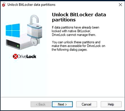 The second wizard dialog is the same in both cases; here, you are asked to select the data partition you want to unlock.