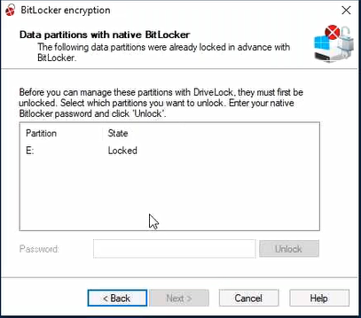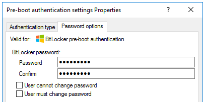 The procedure for unlocking data partitions that were encrypted with original BitLocker and are to be transferred to DriveLock BitLocker Management is based on two settings in the Password options of the BitLocker policy: