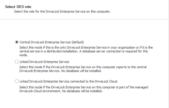 The Linked DriveLock Enterprise Service option is suitable for creating linked DES, for which you do not need to perform database installation again.