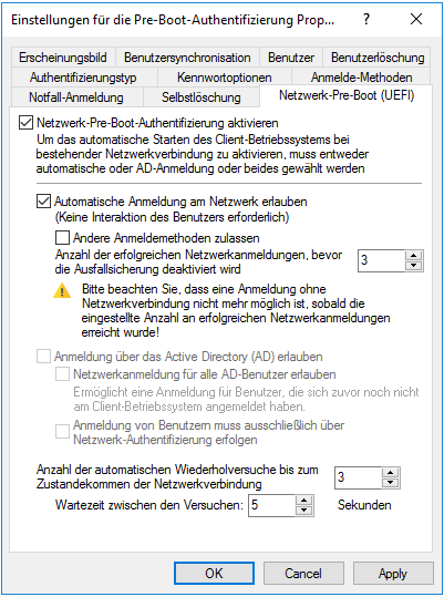 - Wählen Sie die Grundeinstellung Netzwerk-Pre-Boot-Authentifizierung aktivieren.