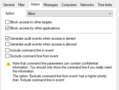 - Select Allow as the action and check Block access by other applications to ensure that only your own banking software has read access to the registry key.