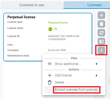 When updating, licences can be extracted from existing policies and entered into the license policy. Existing licenses are not deleted from the existing policies. This makes it easier to switch to the new license management method from version 2024.2.