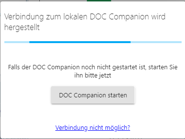 Nach dem Herunterladen der DOC Companion App starten Sie den DOC Companion über folgenden Dialog: