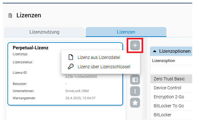 Wenn Sie Ihre DriveLock Lizenz als Schlüssel oder Datei erhalten haben, gehen Sie folgendermaßen vor: