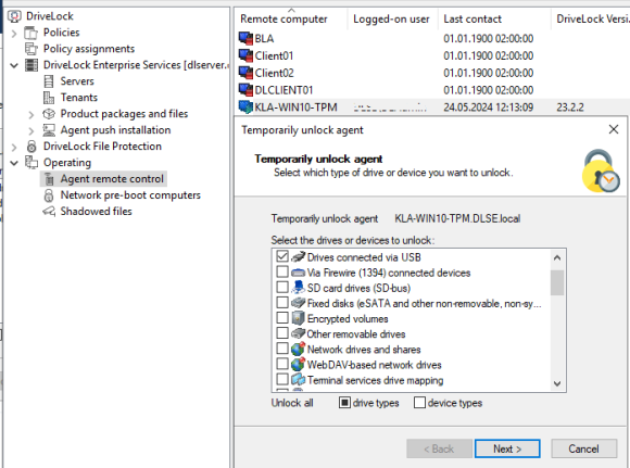 Unlocking DriveLock Agents temporarily