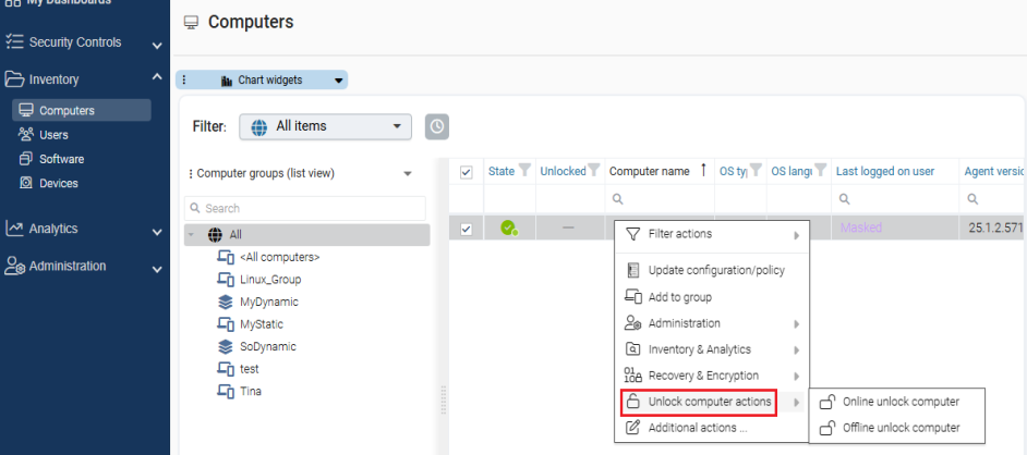 Information on unlocking computers that are offline can be found here.