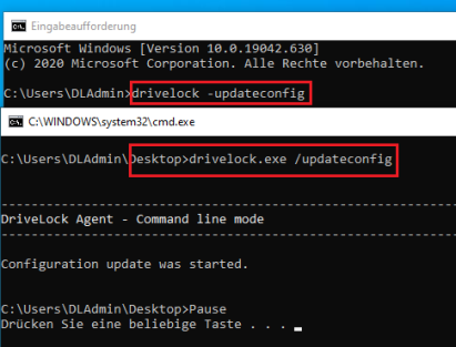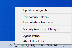 On the DriveLock Agent via the DriveLock taskbar icon and the menu command Update configuration.