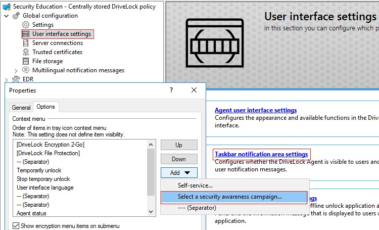 On the Options tab, add the option Select a security awareness campaign...(see figure).