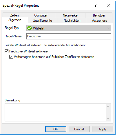 Siehe auch Einstellung Lokale Whitelist und Predictive Whitelisting.