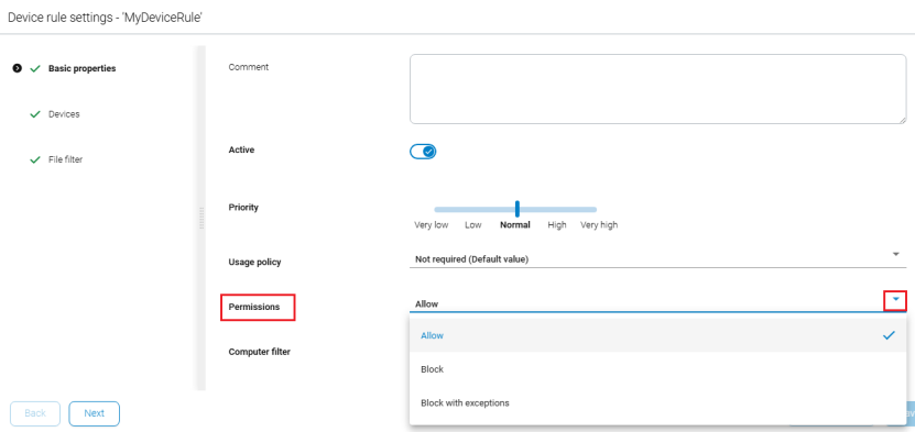 In the DriveLock Operations Center (DOC), this is the Permissions setting in device or drive rules.