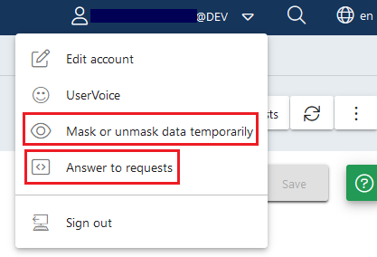 When data masking is disabled, you cannot cancel but temporarily enable data masking with the Mask or unmask data temporarily option. In the opposite scenario, where all data is currently masked, you cannot mask any data, but you can temporarily unmask the data.