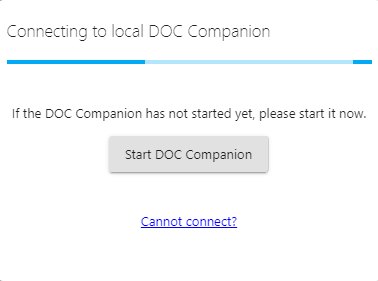 After downloading the DOC Companion App, start the DOC Companion via the following dialog: