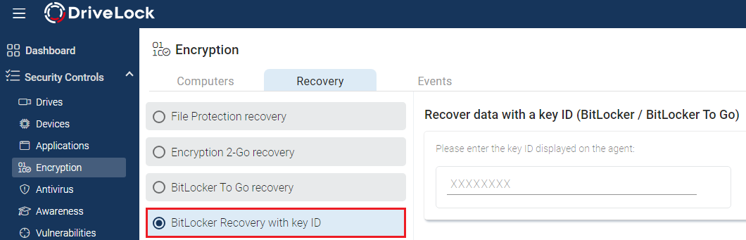 Helpdesk staff can still perform a recovery operation here by entering the key ID displayed to the end user.