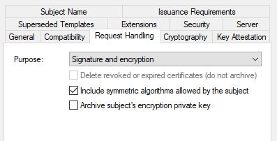 On the Request handling tab, select Signature and encryption as the purpose.