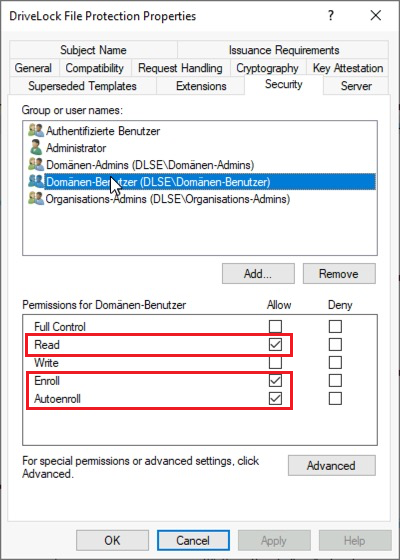 Now open the Security tab in the DriveLock File Protection Properties of the basis-EFS.