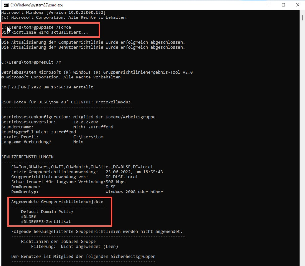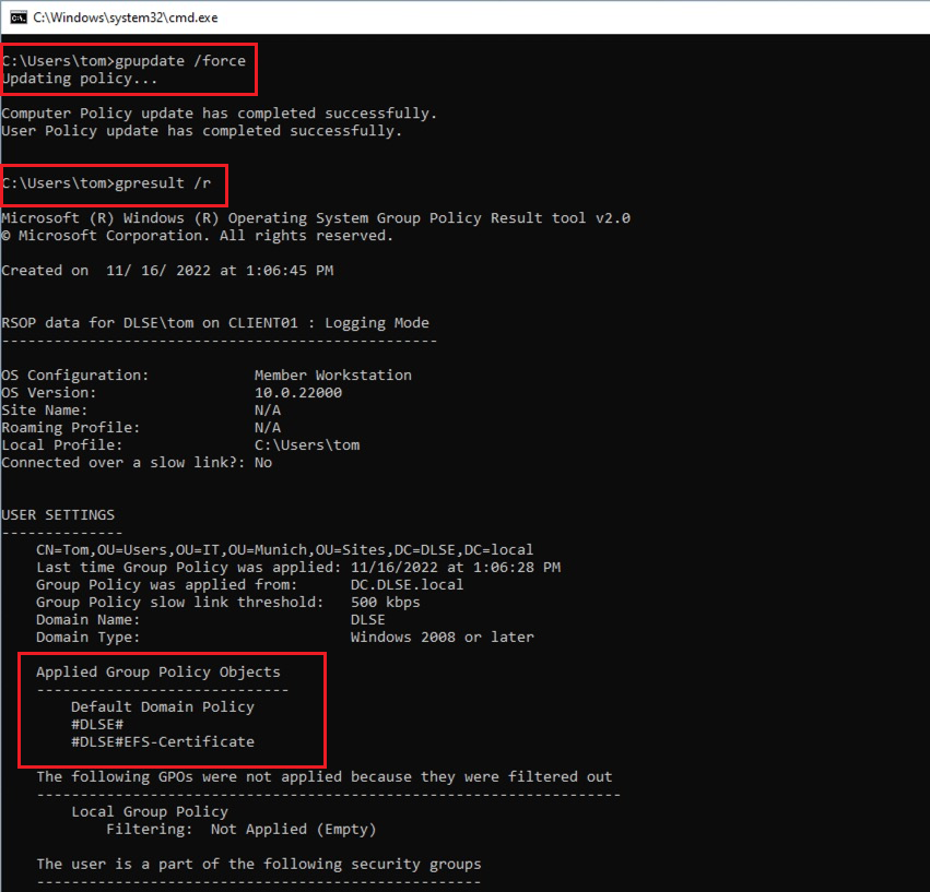 gpupdate /force: This is to verify that the GPO has been applied -