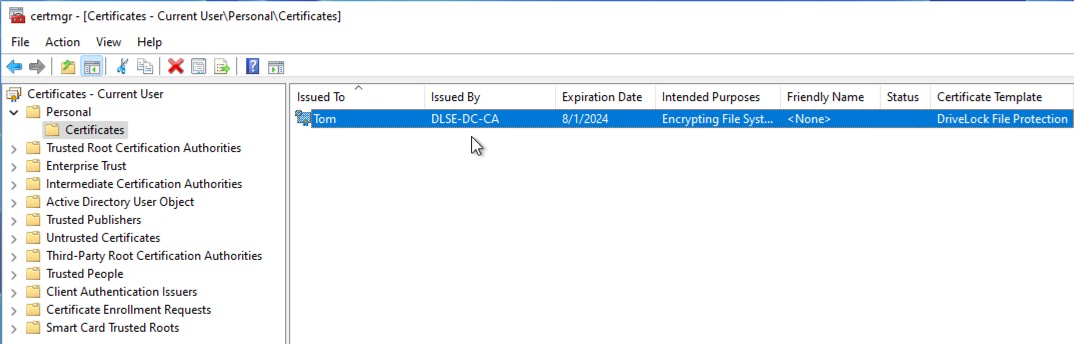 The certificate can be found in certmgr.msc under Personal - Certificates.