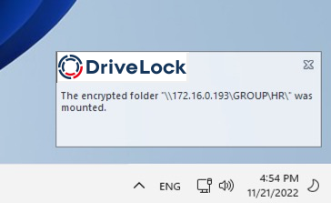 As soon as the user clicks on the folder in the network, it is decrypted and mounted by DriveLock Agent. A corresponding message will appear in the message area.