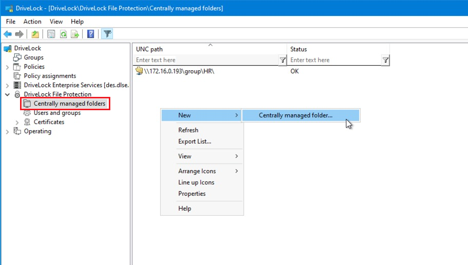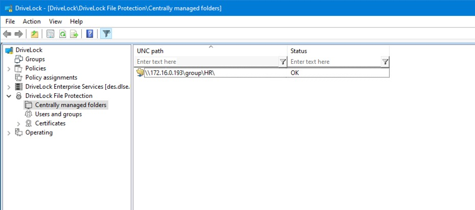 Specify here the UNC path to the network drive or the published folder to be encrypted with DriveLock File Protection.