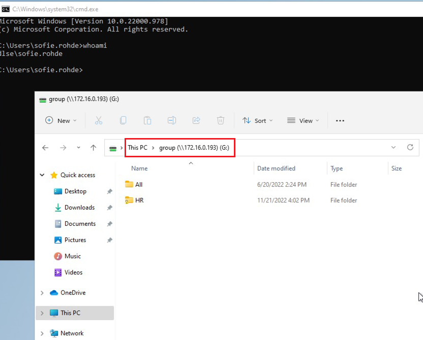 You can now log on to a computer that is a member of the domain. In this example we use "Sofie Rohde". Sofie is a member of the group "Human Resource Users Munich".