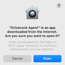 After logging in, the following dialog opens. Please confirm the use of the DriveLock Agent App by clicking Open .