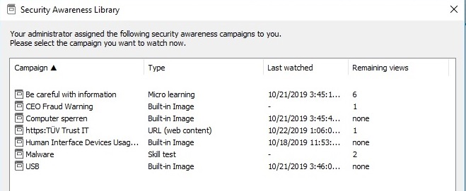Campaigns are displayed on the DriveLock Agent according to the settings in the policy.